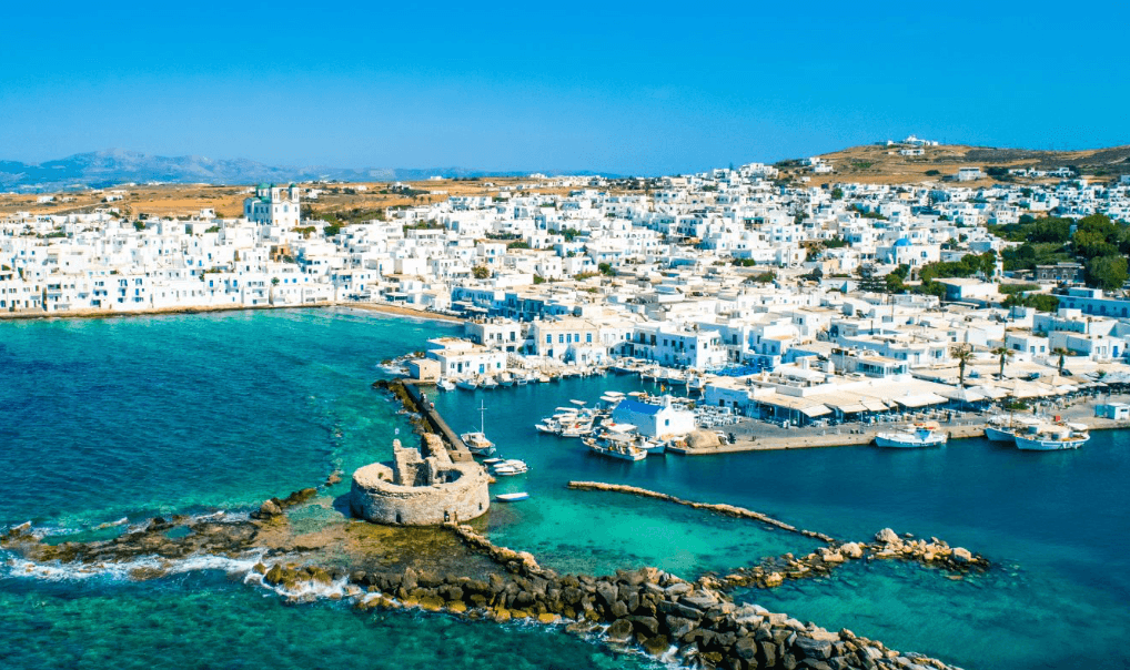 Cruise to Paros, celebrated for its pristine beaches, vibrant windsurfing scene, and picturesque villages. Explore the charming fishing harbor of Naoussa, wander through traditional towns, and relax at Golden Beach, a top destination for windsurfing enthusiasts.