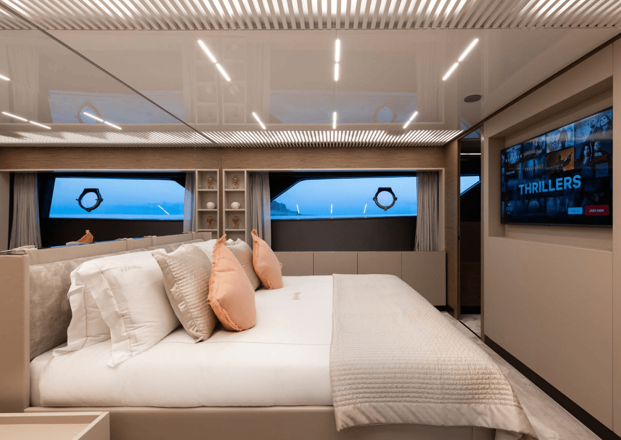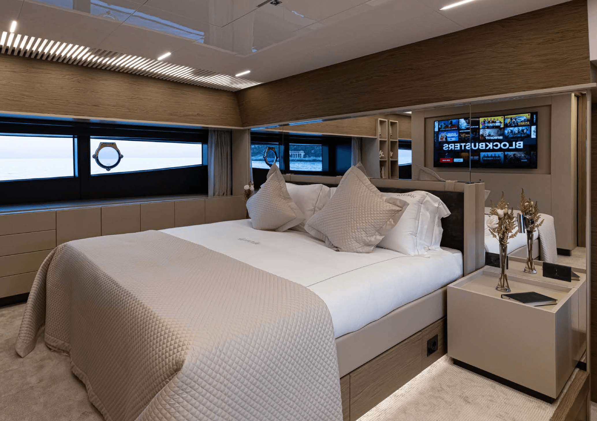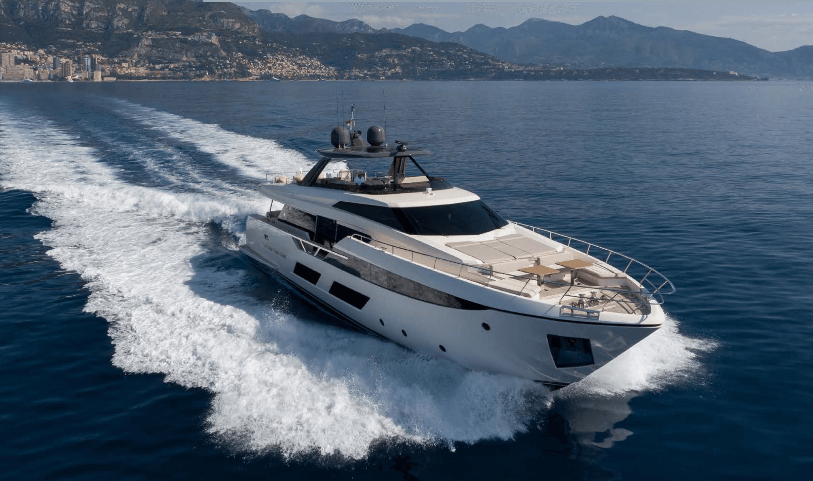 The 28.18 m Ferretti motor yacht ALEGRIA II is a contemporary yacht featuring a stunning sundeck and easy access to a variety of water toys from the swim platform. Outdoor spaces offer multiple sunbathing and alfresco dining options, including daybeds and a bar on the sundeck for ultimate relaxation. Designed by Zuccon International Project, the interiors are stylish and light, with a palette of whites, soft greens, greys, and light browns. ALEGRIA II accommodates eight guests in four cabins, a main deck master, a VIP suite, a double, and a twin, served by a crew of four.
