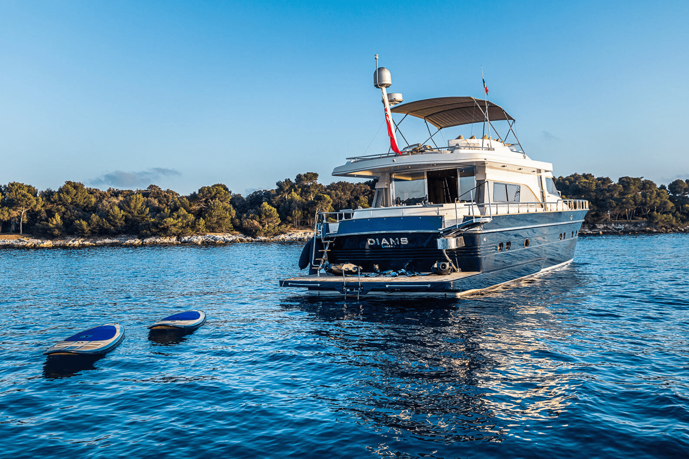 M/Y DIAMS is a 21m Astondoa that perfectly suits day charters, family holidays, getaways with friends, and even quayside events. Originally launched in 1986 and fully refitted in 2023, this two-deck yacht is ready to take you through the Mediterranean or to any destination you wish to explore. With a cruising speed of 14 knots and a top speed of 17 knots, she strikes an ideal balance between comfort, size, and performance. Her exterior layout is designed for relaxation, offering multiple sunbathing and lounging areas. Equipped with a selection of water toys, DIAMS is a great choice for families or groups of friends seeking an enjoyable and budget-friendly charter experience with a touch of originality.
