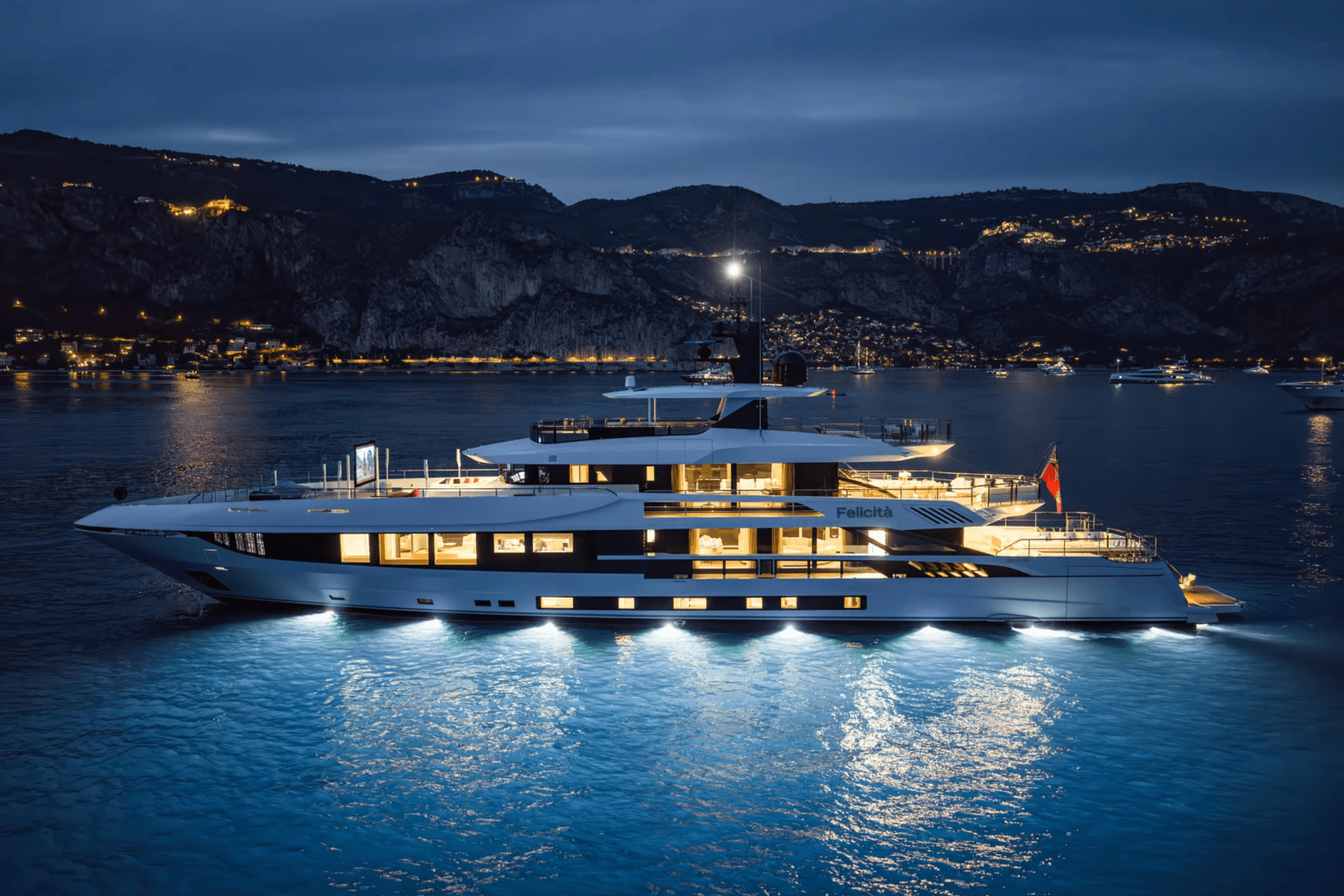 Felicità is a brand-new 50-metre yacht built in 2025 by Mangusta, with naval architecture by Alberto Mancini and the Overmarine Group. Constructed with a robust steel hull, she offers exceptional stability and comfort both at anchor and underway. Designed to host up to 12 guests with a dedicated crew of 11, Felicità combines elegance and performance with generous living spaces and refined amenities. Guests can unwind in the deck Jacuzzi, stay active in the fully equipped gym, or enjoy seamless connectivity with onboard WiFi. As an approved RYA water sports centre, she also delivers an exciting range of activities, making every journey both relaxing and adventurous.