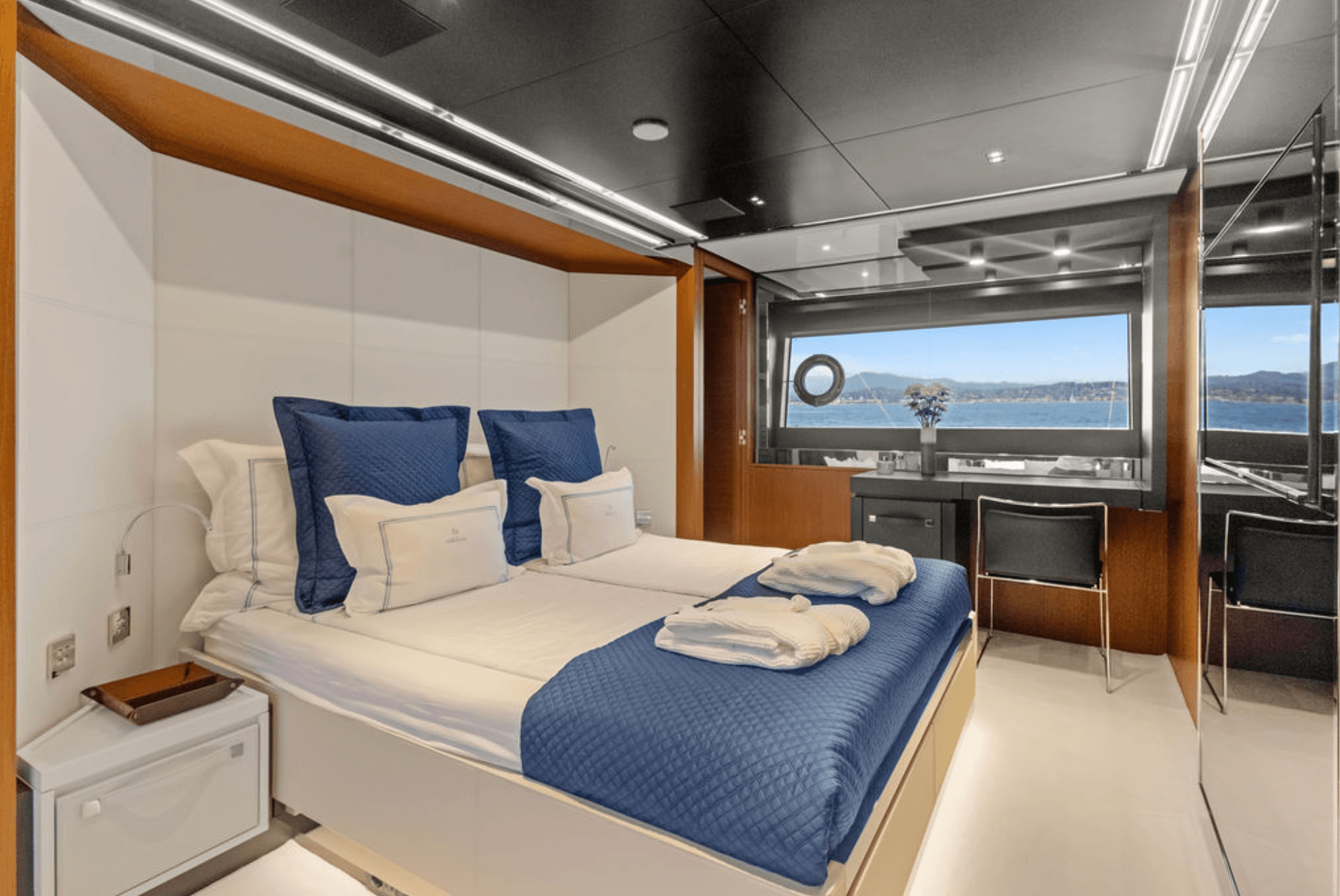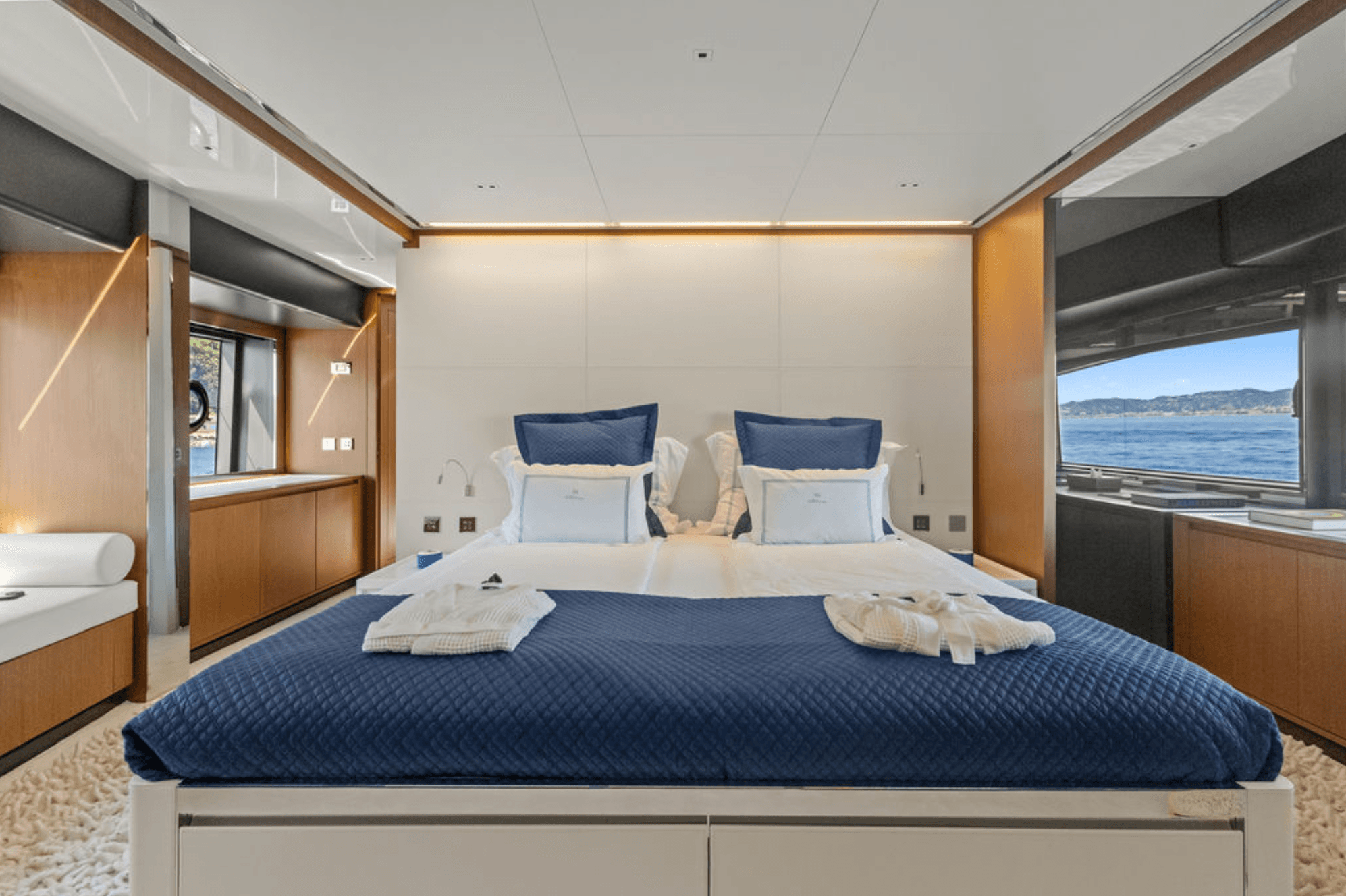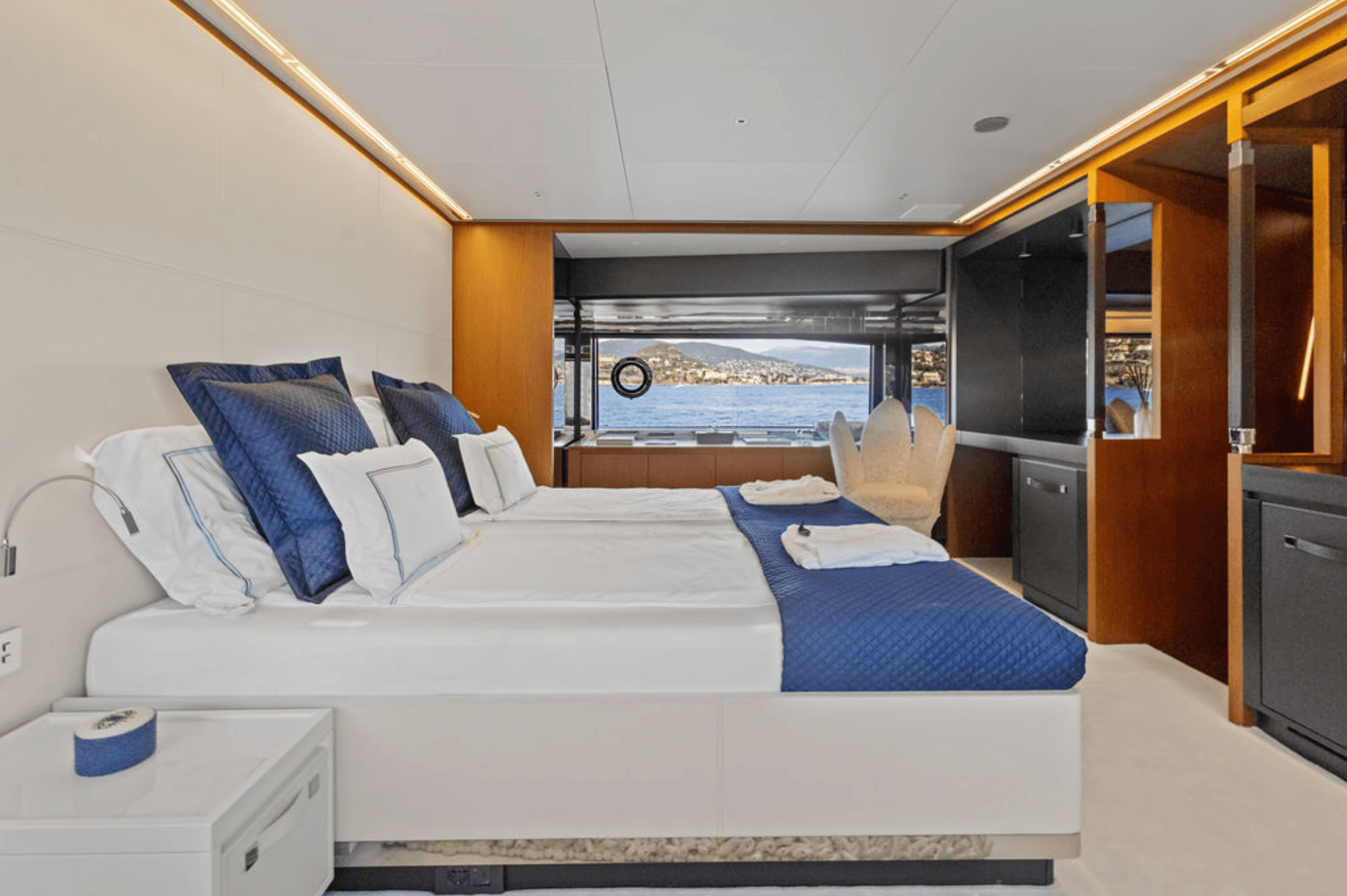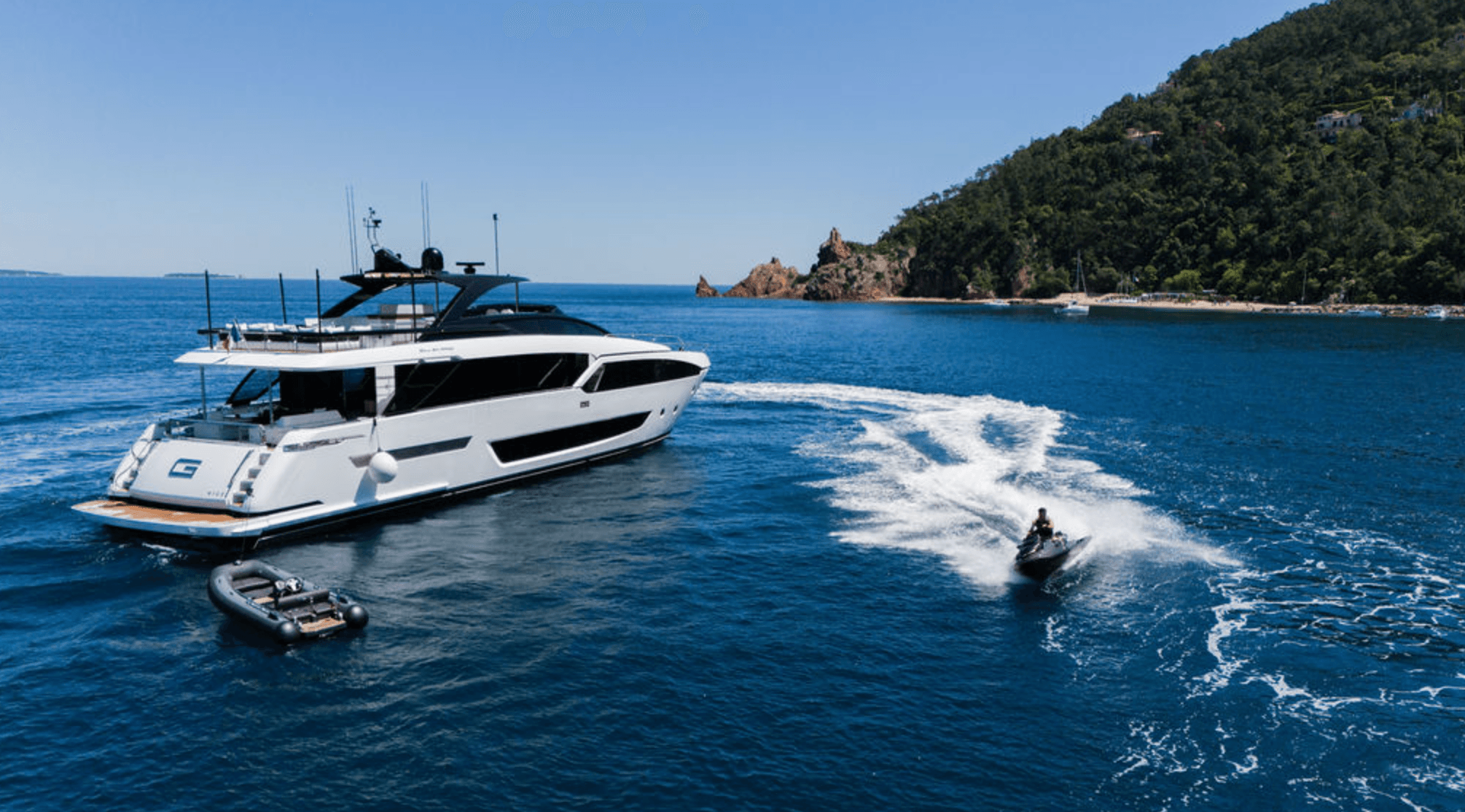 This brand-new RIVA yacht represents the new generation of luxury flybridge yachts, combining the legendary RIVA heritage with futuristic design and advanced onboard technology. Her elegant, flowing lines create a dynamic and eye-catching profile that stands out in the yachting world. She comfortably accommodates up to 8 guests in four luxurious cabins, including two full-beam Master cabins and two VIP cabins, offering exceptional comfort and space. The yacht features outstanding outdoor living areas, including a spacious flybridge, sunbeds at the bow and aft main deck, and a movable beach platform that extends directly into the water. Guests can enjoy outdoor dining on the flybridge and aft deck, as well as a refined dining area inside the salon. Perfectly based in Monaco, M/Y G is ideal for cruising the South of France, Corsica, and the Italian coast, allowing guests to discover beautiful bays and charming coastal towns. With a professional crew of four dedicated to your comfort, every moment on board is designed for relaxation and enjoyment. From gourmet meals prepared by the chef to sunset champagne on deck, M/Y G promises an unforgettable luxury charter experience.
