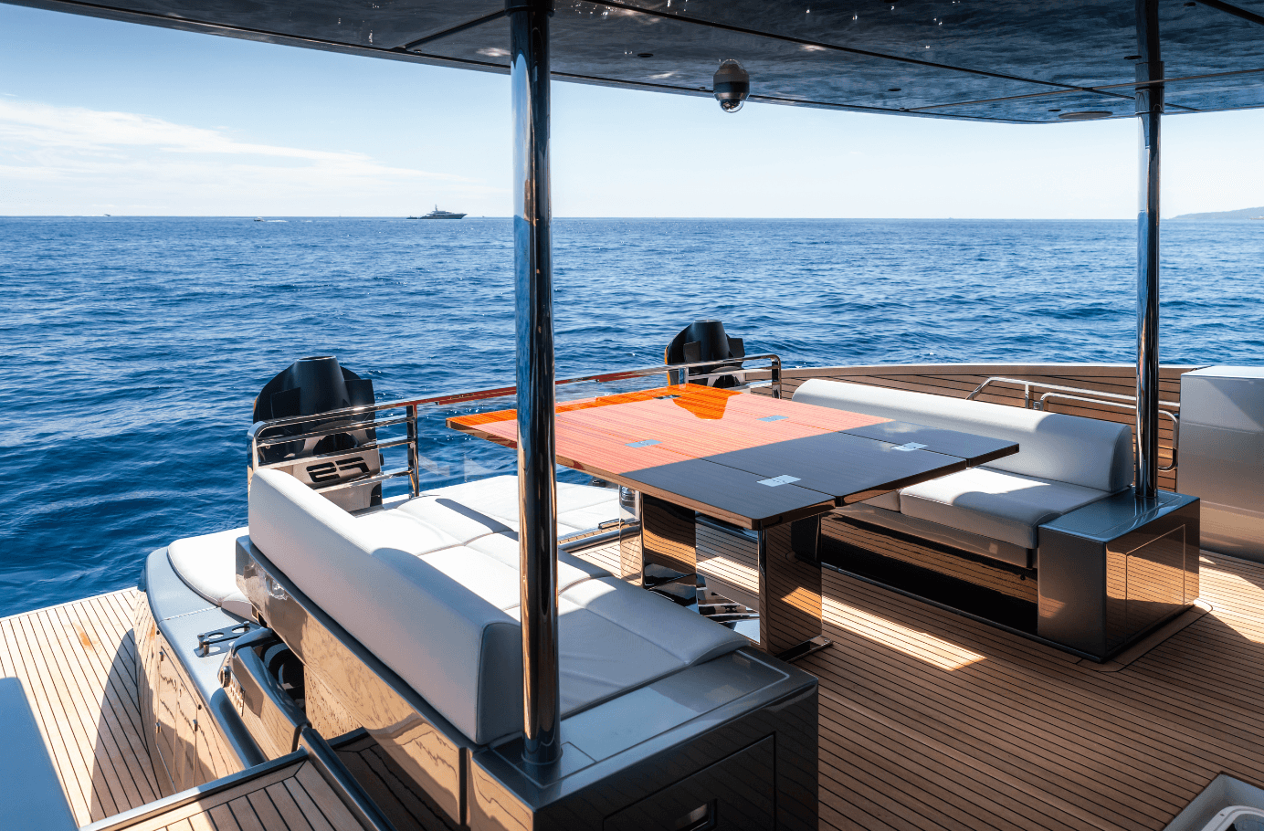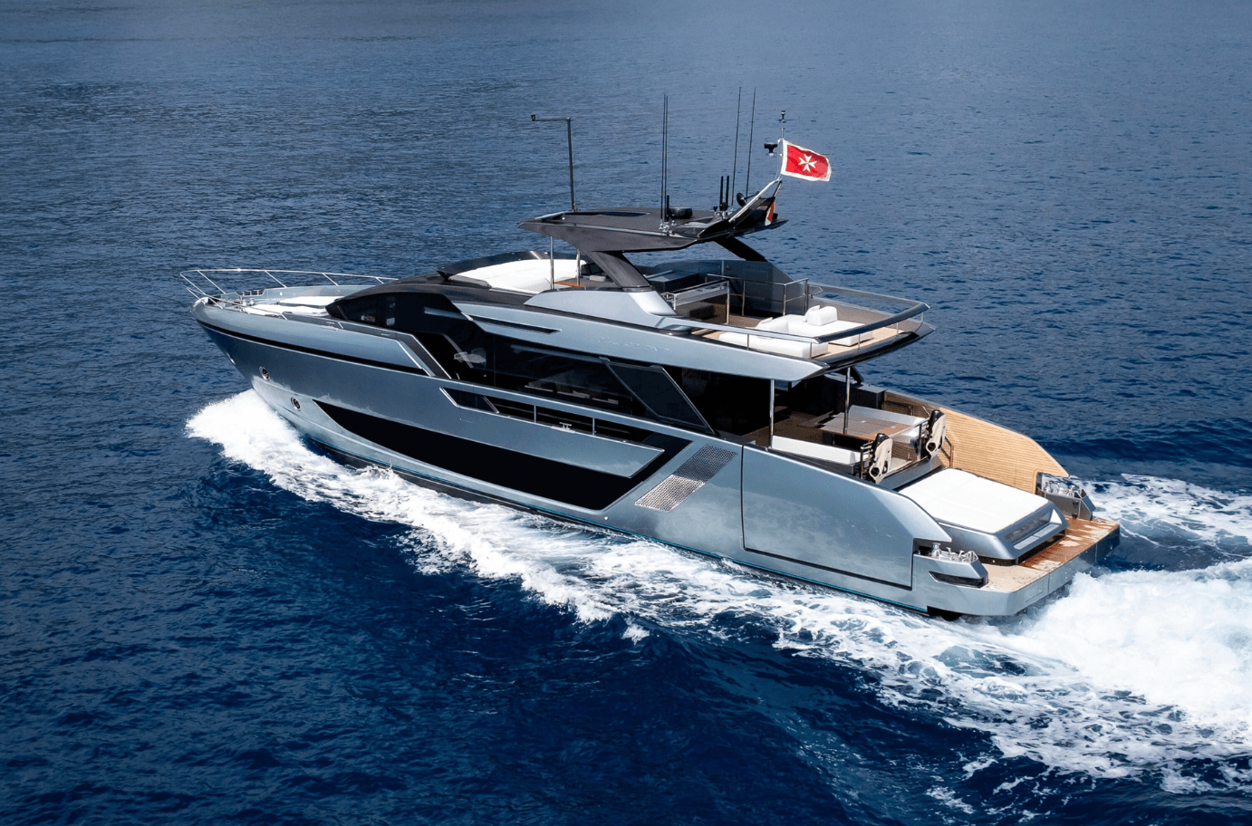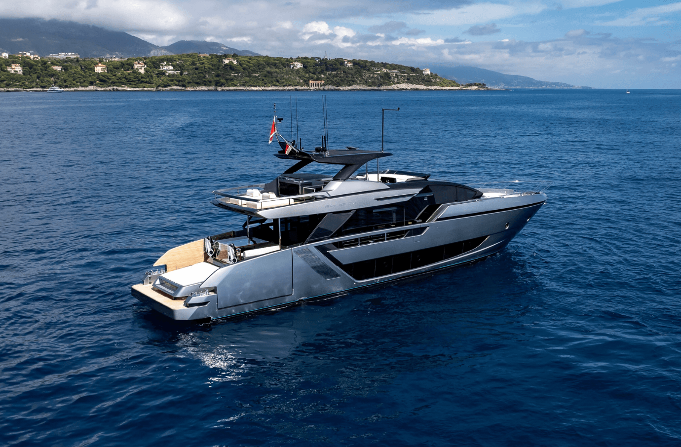 Step aboard L’AS BLEU, the Riva 82’ Diva, a brand-new expression of Italian elegance now available for charter. Her standout beach club with two folding terraces offers an exceptional connection to the sea, while the spacious flybridge is perfect for sunbathing, relaxed dining, and memorable moments on board. The interior features refined contemporary design and four elegant en-suite cabins accommodating up to eight guests. With stabilizers, a cruising speed of 27 knots, and a top speed of 30 knots, L’AS BLEU promises a smooth and thrilling Mediterranean experience. Available in the South of France, Corsica, Sardinia, and along the Italian coast.