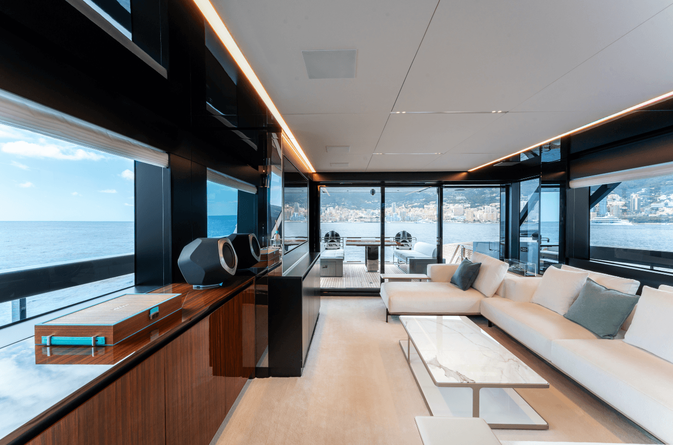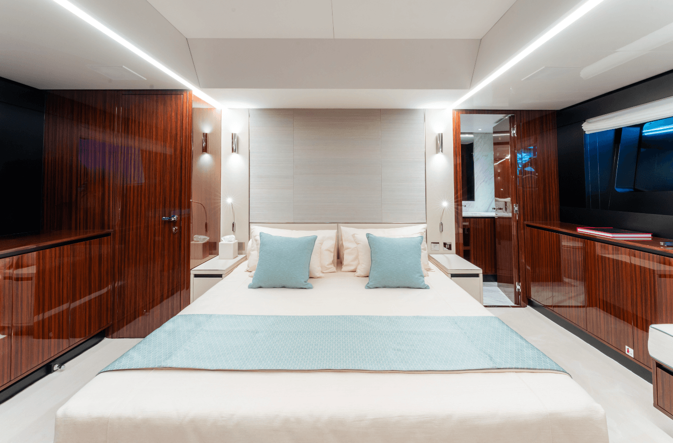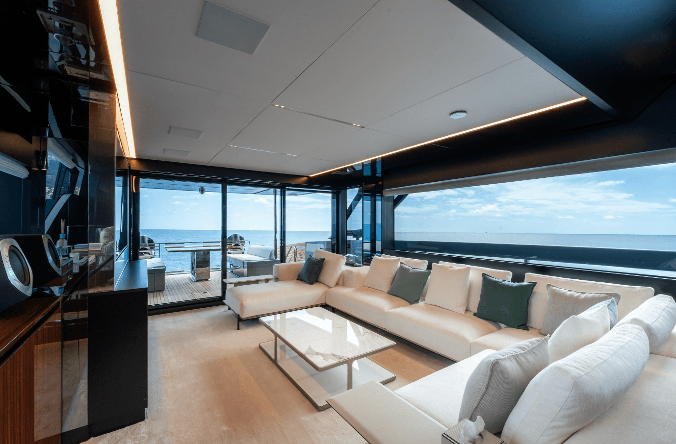 Step aboard L’AS BLEU, the Riva 82’ Diva, a brand-new expression of Italian elegance now available for charter. Her standout beach club with two folding terraces offers an exceptional connection to the sea, while the spacious flybridge is perfect for sunbathing, relaxed dining, and memorable moments on board. The interior features refined contemporary design and four elegant en-suite cabins accommodating up to eight guests. With stabilizers, a cruising speed of 27 knots, and a top speed of 30 knots, L’AS BLEU promises a smooth and thrilling Mediterranean experience. Available in the South of France, Corsica, Sardinia, and along the Italian coast.