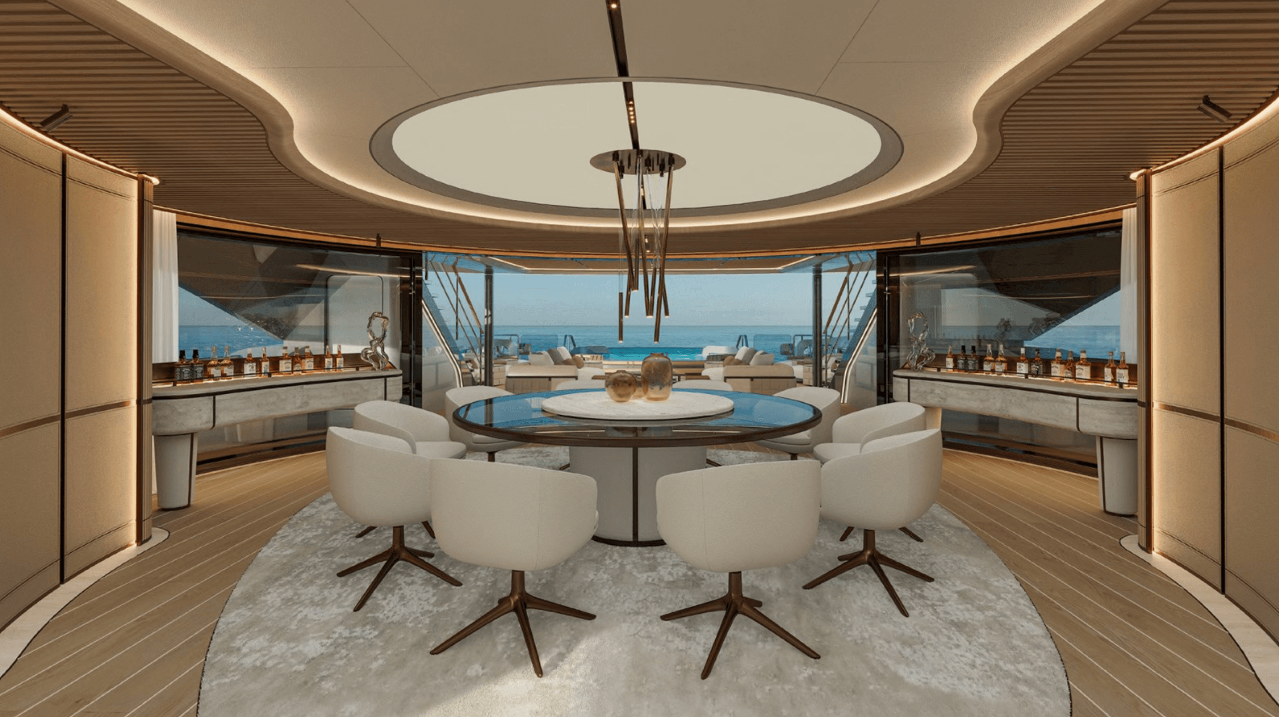 The ISA 66m GranTurismo (2028) is a sleek motor yacht for sale in Ancona, Italy. Featuring a metallic blue-grey hull, panoramic glass decks, and a sky lounge with bow Jacuzzi, she blends elegance with versatility. Outdoor highlights include an infinity pool, sun loungers, and multiple entertainment areas. Inside, the yacht offers warm woods, marble, and brass accents, with a full-beam master, six guest cabins, a wellness spa, and direct sea-access platforms. A modern showcase of design and luxury.