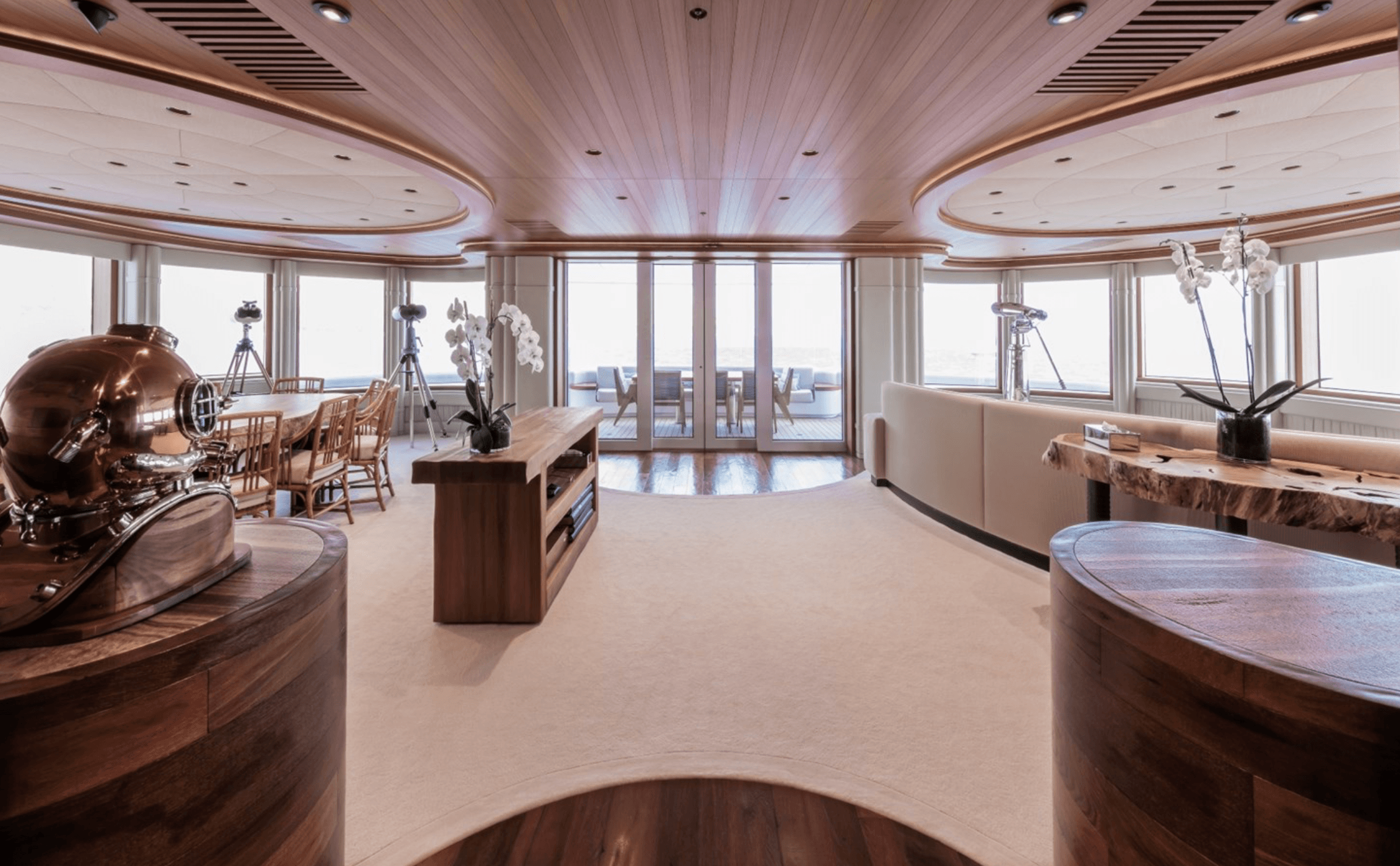The 2010-built 374’9” expedition motor yacht LUNA is currently offered for sale and is lying in Hamburg, Germany. With an overall length of 114.2 metres, LUNA was constructed by Lloyd Werft in Bremerhaven. Her striking exterior lines were penned by Newcruise, while the interiors were designed by the renowned Donald Starkey. Following refits in 2016 and 2021, the yacht is presently undergoing a major additional refit. Featuring an ice-class hull and a diesel-electric propulsion system, LUNA stands out as one of the most recognizable and capable luxury expedition yachts in the world. Accommodation is provided for up to 18 guests across 9 well-appointed suites, supported by a professional crew of up to 51 to deliver exceptional onboard service. Her amenities are extensive and include a dance floor, private cinema, beauty salon, beach club, fully equipped gym, as well as Wi-Fi and satellite communications. Constructed with a steel hull and aluminium superstructure, LUNA comfortably cruises at 16.8 knots, reaches a maximum speed of 22 knots, and boasts an impressive range of approximately 9,500 nautical miles. Four retractable stabilizers ensure excellent comfort both while cruising and when at anchor.