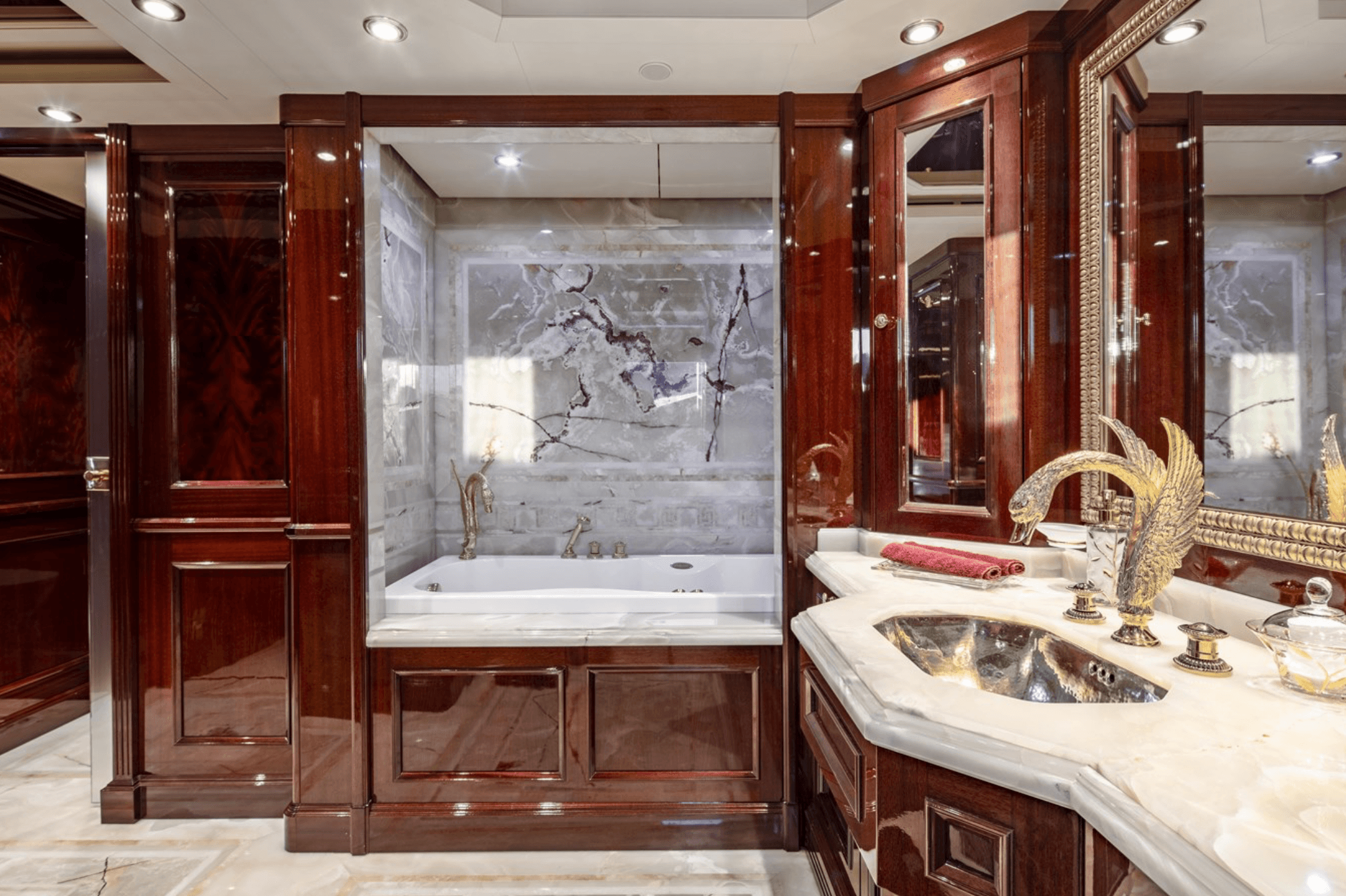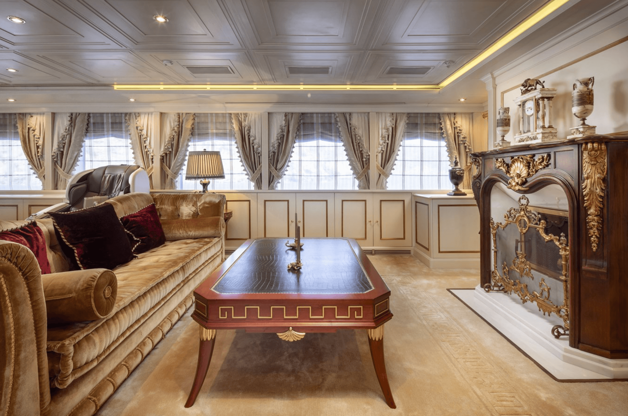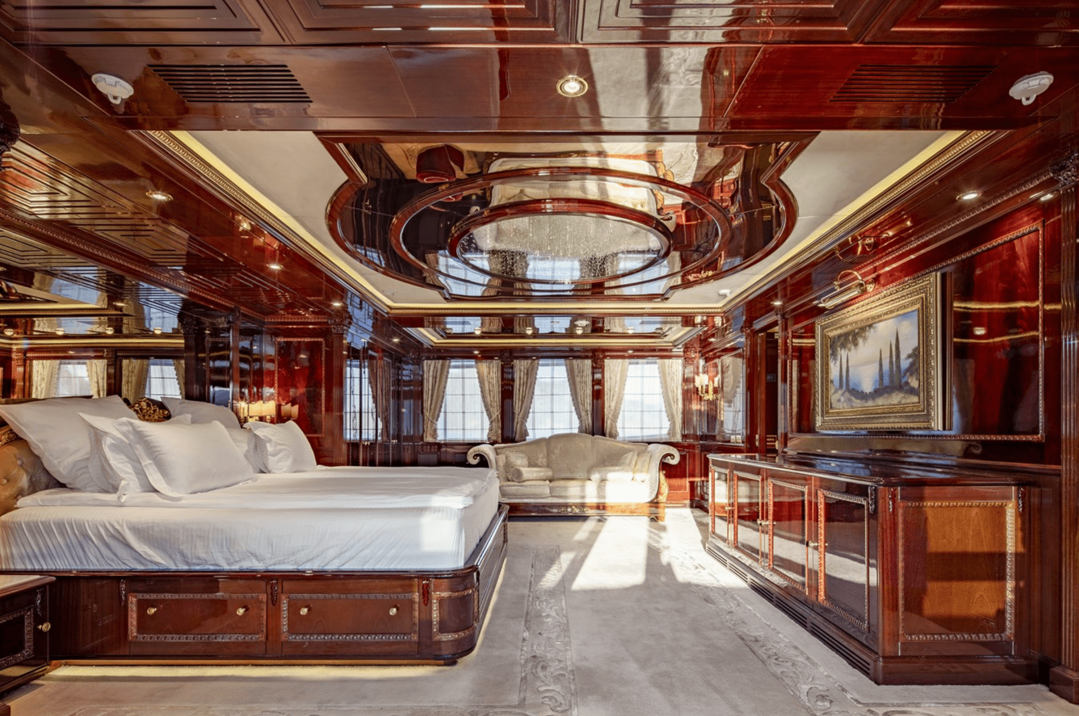 The 57m (186’1”) CRN motor yacht RICHAR, built in 2008, is for sale in Gocek, Turkey. She features four decks, a lavish Baroque-style interior, and accommodation for 14 guests in six cabins, including a main-deck master suite. Highlights include an elevator, cinema lounge, large swimming pool, and a full wellness area with hammam, sauna, and gym. Powered by twin Caterpillar engines, RICHAR cruises at 12.5 knots, offers a 4,500-nautical-mile range, and is presented in excellent, privately used condition with full crew and toys.